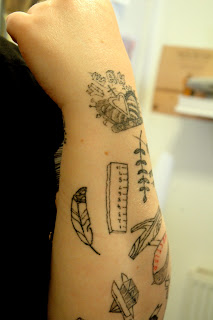 inspired, of course, by my amazing first tattoos, here's amanda looking good in her new addition. and don't worry everyone I tattoo that is NOT me, I make sign a contract because let's face it, I'm not trained. I don't charge either, of course, in case you got worried about that